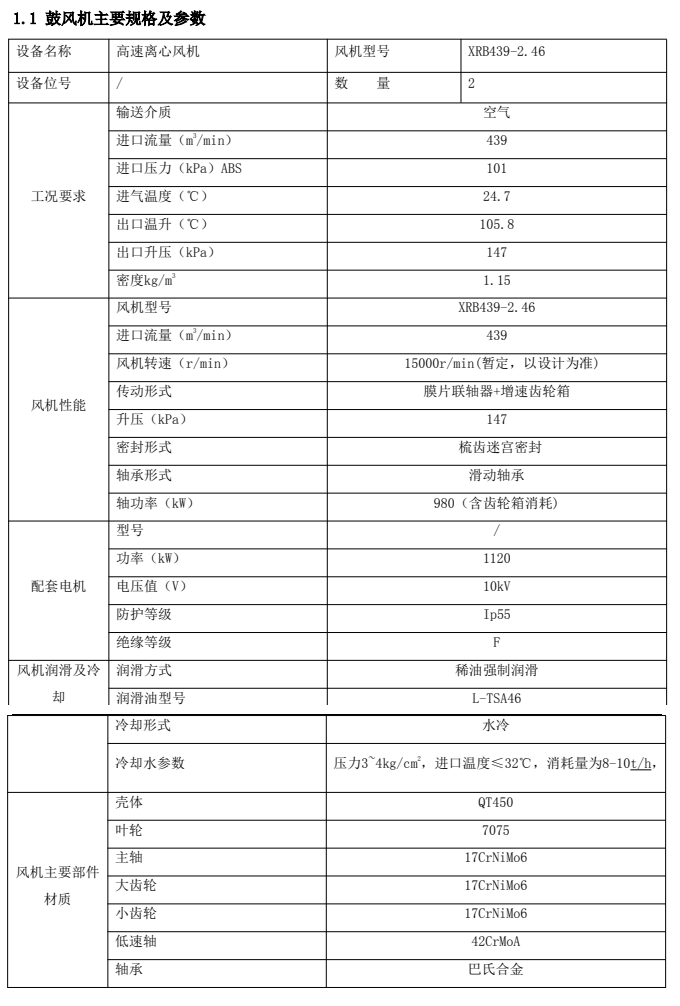 2.1 鼓風機為電機驅動,離心式的水平剖分整體齒輪結構并附有所述的輔助設備。起動和停車時放空閥打開以保證無負荷起動和停車及防止風機發(fā)生喘振。