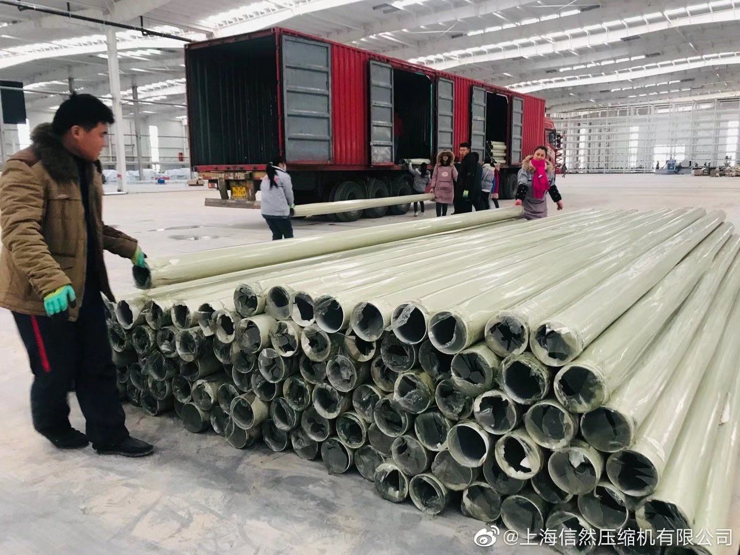 信然空壓機專用鋁合金超級管道,白色噴塑外觀,專業(yè)、專注、專長空壓機系統(tǒng)工程安裝、調(diào)試等。本次安裝的信然牌超級管道總長度超過3000米以上,還有一集裝箱在卸貨中...