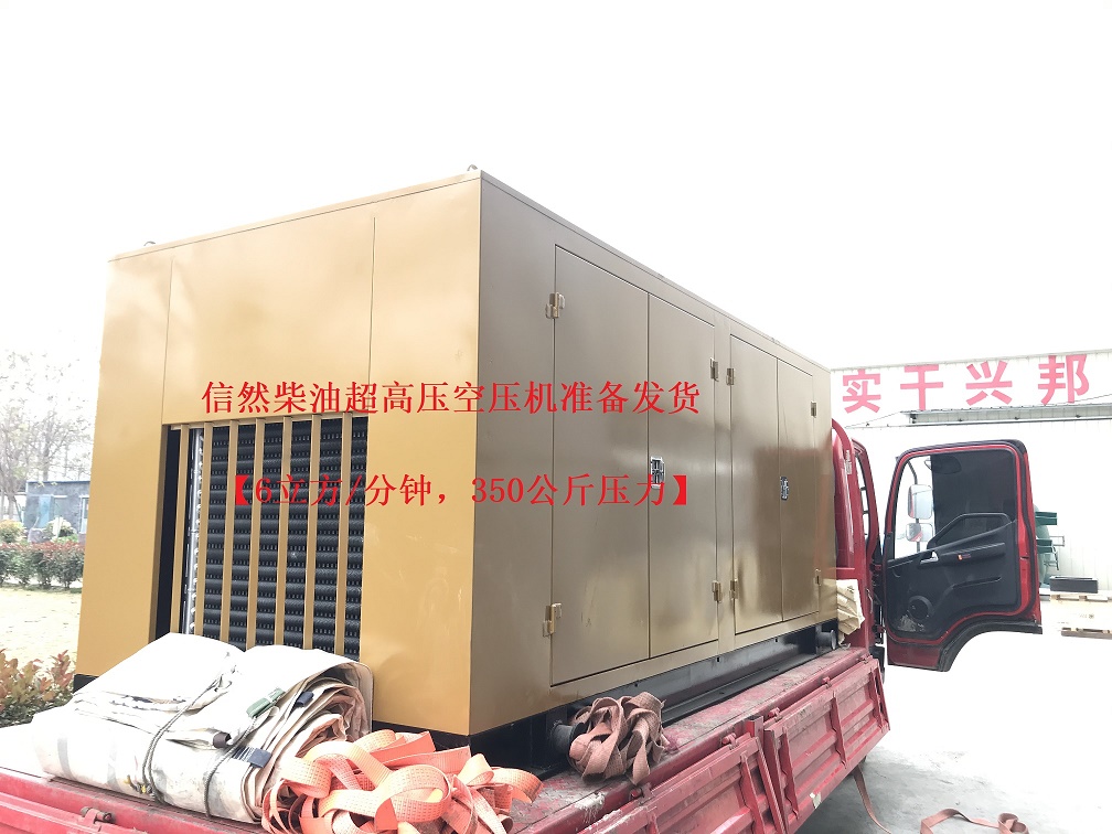 信然柴油超高壓空壓機【6立方/分鐘,350公斤壓力】準(zhǔn)備發(fā)貨,使用地吉林省某煤安集團。信然超高壓柴油空壓機在石油化工、煤炭礦山行業(yè)應(yīng)用廣泛。