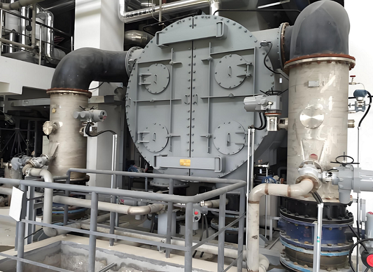 凝汽器的作用:汽輪機(jī)做完功的乏蒸汽(低壓、低溫蒸汽)進(jìn)入凝汽器,被循環(huán)冷卻水冷凝成凝結(jié)水(給水),重新送回鍋爐加熱。這個(gè)過(guò)程釋放的潛熱被循環(huán)冷卻水帶走。煤電廠為什么需要高真空?降低排汽壓力:凝汽器內(nèi)保持高真空(絕對(duì)壓力遠(yuǎn)低于大氣壓,通常在 3-8 kPa abs 或 -95 到 -97 kPa gauge 左右),使得乏蒸汽能在較低的溫度(對(duì)應(yīng)其低壓下的飽和溫度)下凝結(jié)。增大蒸汽有效焓降:根據(jù)熱力學(xué)原理(朗肯循環(huán)),汽輪機(jī)入口(鍋爐產(chǎn)生的高壓高溫蒸汽)和出口(凝汽器壓力)之間的壓力差越大,蒸汽在汽輪機(jī)中膨脹做功的能力就越強(qiáng),即有效焓降越大,機(jī)組熱效率越高。