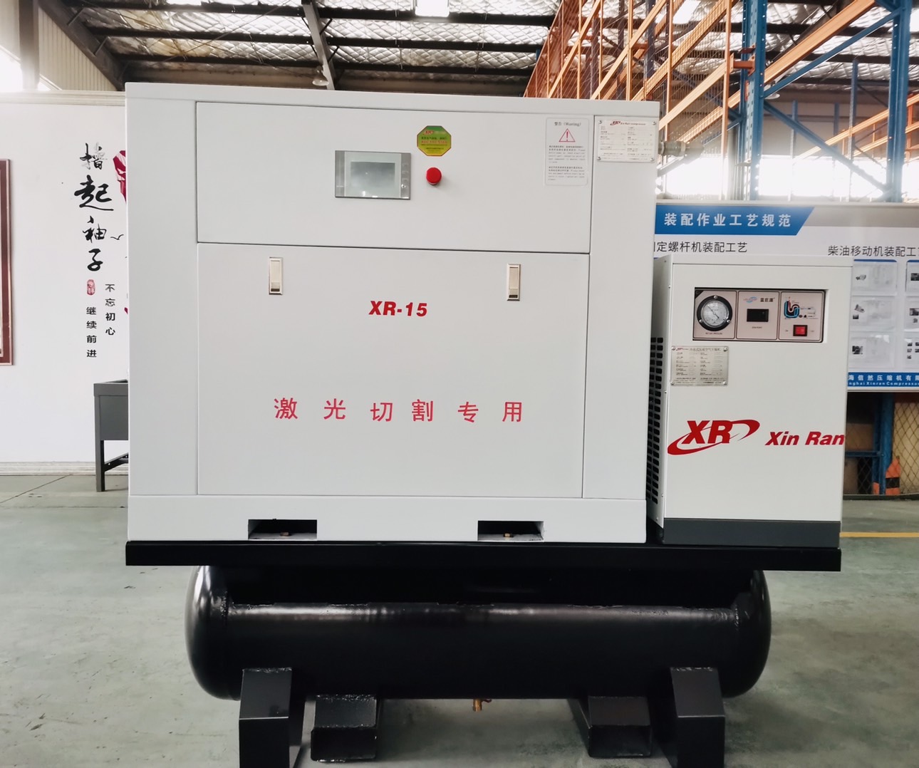 信然集團(tuán)專業(yè)生產(chǎn)激光切割機(jī)配套用空壓機(jī)系統(tǒng),該空壓機(jī)系統(tǒng)包含:永磁變頻螺桿式空壓機(jī)、高溫瓷片冷凍式干燥機(jī)、高效精密過濾器、高壓碳素鋼儲氣罐等有機(jī)結(jié)合。