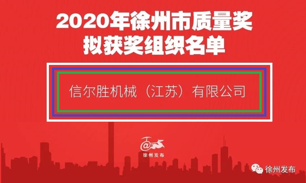 根據(jù)2020年徐州市質(zhì)量獎(jiǎng)評(píng)定工作計(jì)劃安排,經(jīng)企業(yè)申報(bào)、資格審查、信用核查、合法性查詢、資料評(píng)審和現(xiàn)場(chǎng)評(píng)審等程序,并經(jīng)徐州市市長(zhǎng)質(zhì)量獎(jiǎng)評(píng)定委員會(huì)審議通過(guò),確定了信爾勝機(jī)械(江蘇)有限公司等27家組織為2020年徐州市質(zhì)量獎(jiǎng)擬獲獎(jiǎng)組織。