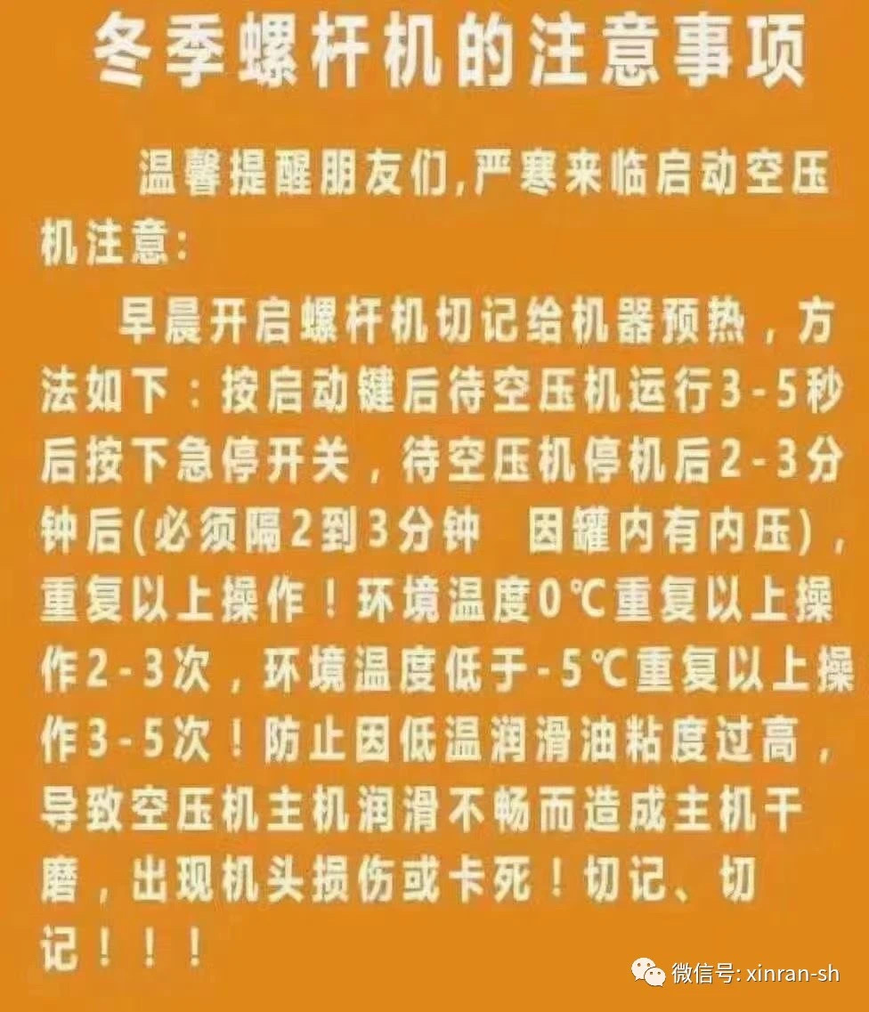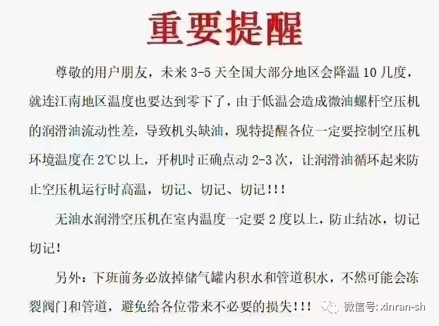 重要提醒:冬季螺桿空壓機(jī)務(wù)必注意!