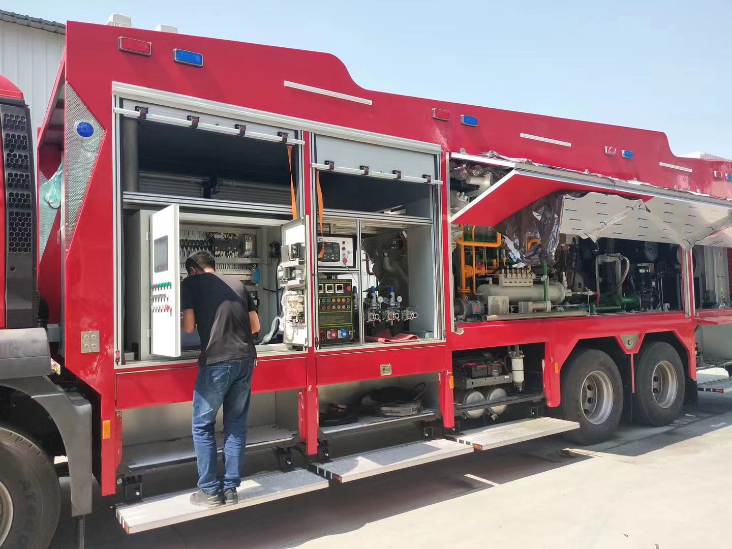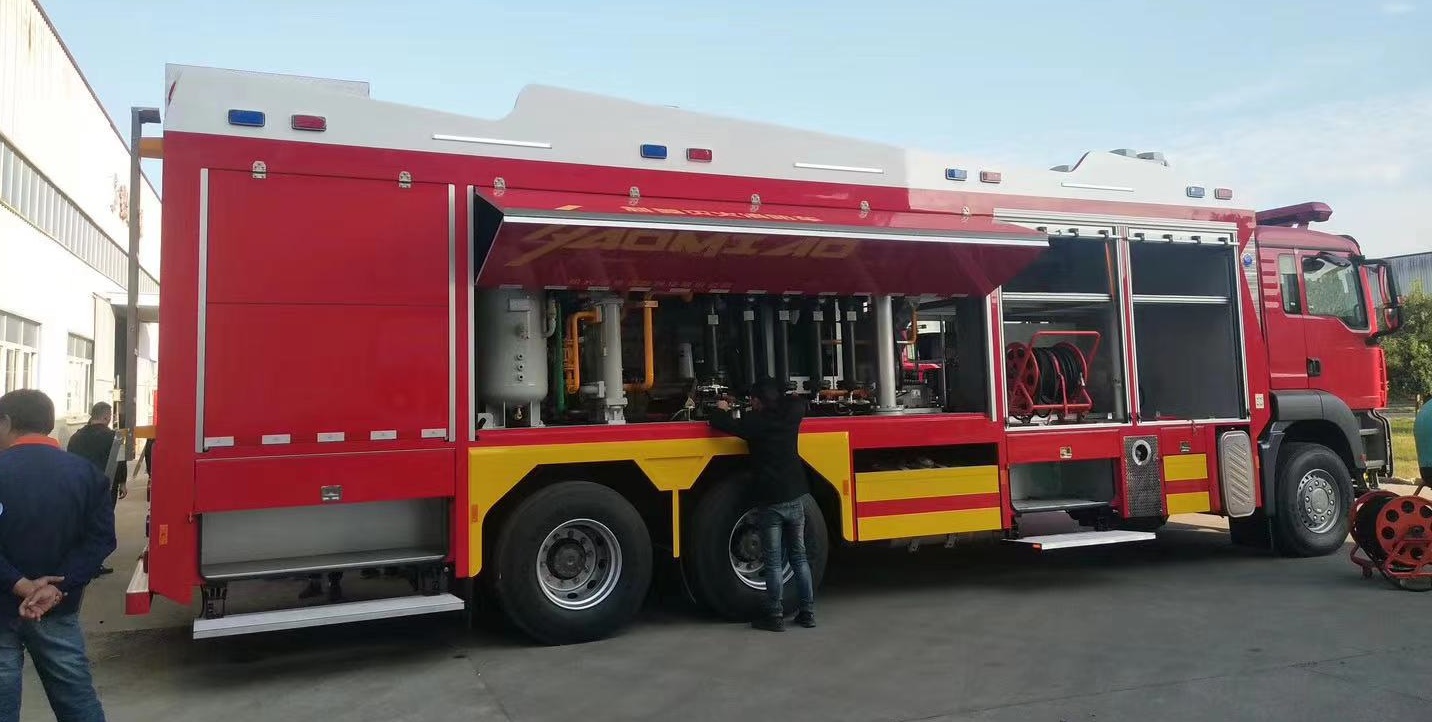 氮?dú)鉁缁鹣儡嚥捎密囕d式膜制氮系統(tǒng),可直接從空氣中提取出純度為95%-99%的高純度氮?dú)?。配置一套氮?dú)饧訅貉b置,可將高純度氮?dú)饧訅褐?5MPa,用于給普通干粉車、氣體消防車充裝高壓氣瓶。設(shè)有3個(gè)DN40低壓氮?dú)獬隹?,可直接用于儲油罐、隧道、船舶及地下倉庫的滅火、抑制、惰化保護(hù)以及防爆。同時(shí)也可以配合壓縮空氣泡沫系統(tǒng)消防車使用,提供壓縮氮?dú)狻D軓V泛用于儲油罐、隧道、地下商業(yè)街、地下倉庫、船舶和地鐵等采用封閉窒息方法滅火的大型火災(zāi)場。