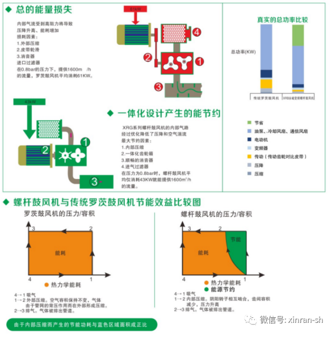 2、基于內壓縮,對比羅茨鼓風機,主機節(jié)能提升;