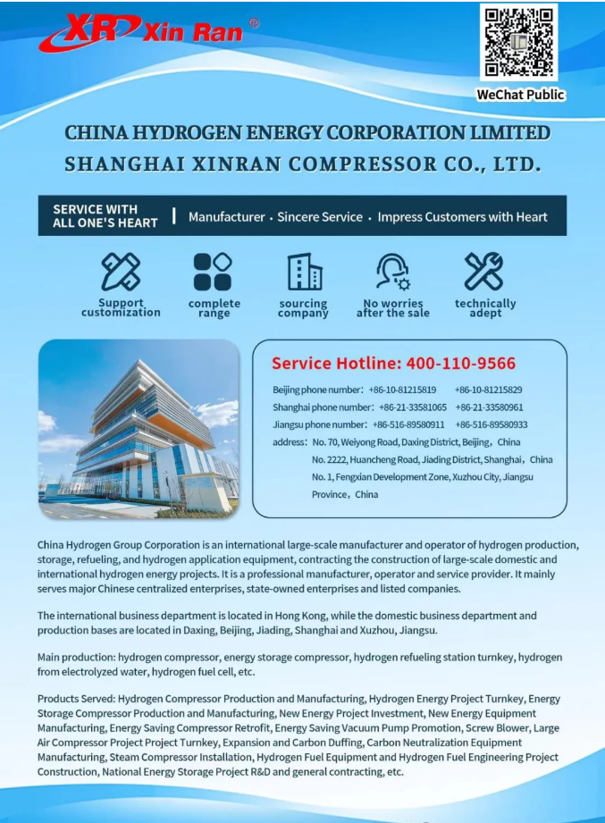 China Hydrogen Energy Group Co., Ltd. and Shanghai Xinran Compressor Co., Ltd. will bring hydrogen compressors, alkaline electrolysis cells, centrifugal compressors, axial compressors, magnetic levitation blowers, permanent magnet variable frequency screw air compressors, low-pressure cement conveying air compressors, etc. to participate. Welcome to the booth.