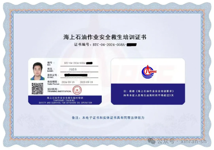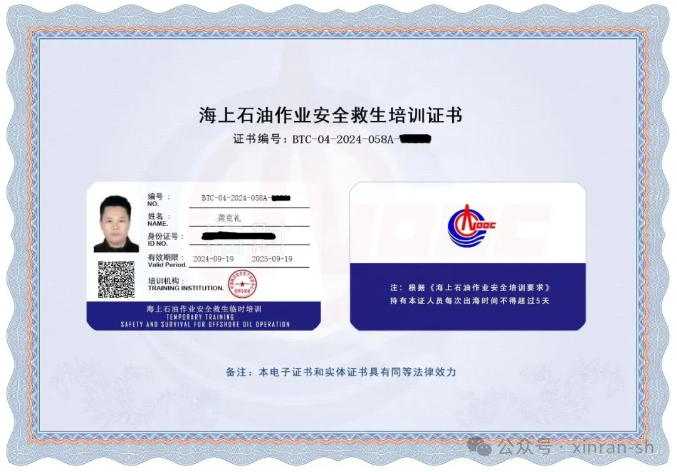 9月20日,信然壓縮機(jī)工程師:閆武帝、龔克禮等通過中國(guó)海洋石油集團(tuán)有限公司海上石油作業(yè)安全救生培訓(xùn)證書。證書編號(hào):BTC-04-2024-058A-XXXX。為上海信然壓縮機(jī)在海洋平臺(tái)銷售及售后空壓機(jī)提供全方面的安全保障。